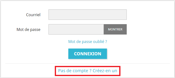 Si vous n’avez pas déjà de compte utilisateur associé à votre adresse courriel, vous pourrez en créer un nouveau en vous rendant sur la page de et en cliquant sur le lien au bas de la page.