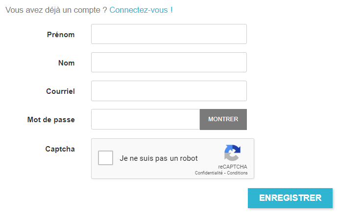 Si vous avez déjà un compte utilisateur associé à votre adresse courriel, vous pourrez vous connecter en vous rendant sur la page de . Saisissez vos informations et cliquer sur le bouton "CONNEXION".
